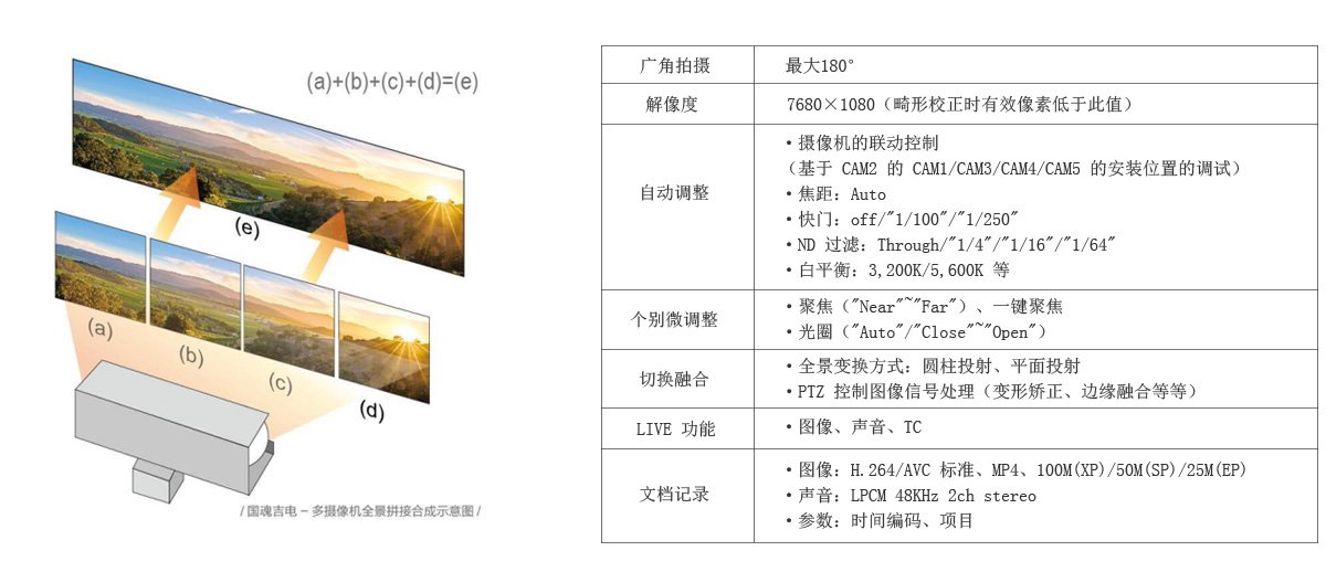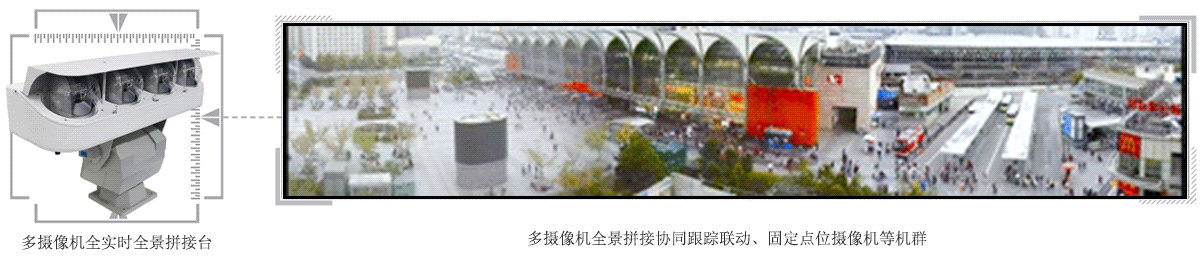多攝像(xiàng)機全景拚(pīn)接集成係統是目前國家大力支持的科(kē)技(jì)項目,采(cǎi)用具有全局觀的寬幅拍攝技術。