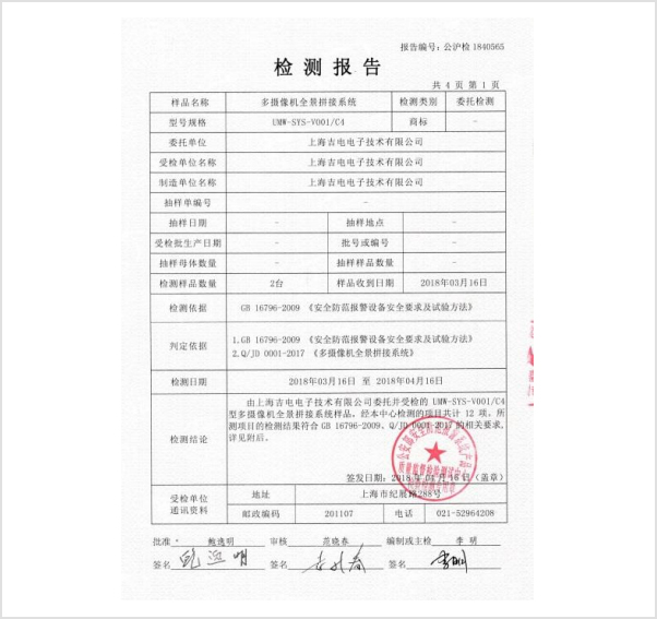 我們(men)的大場景拚接攝像機(jī)係統產品均已通(tōng)過公安部有關部門的認證和測試