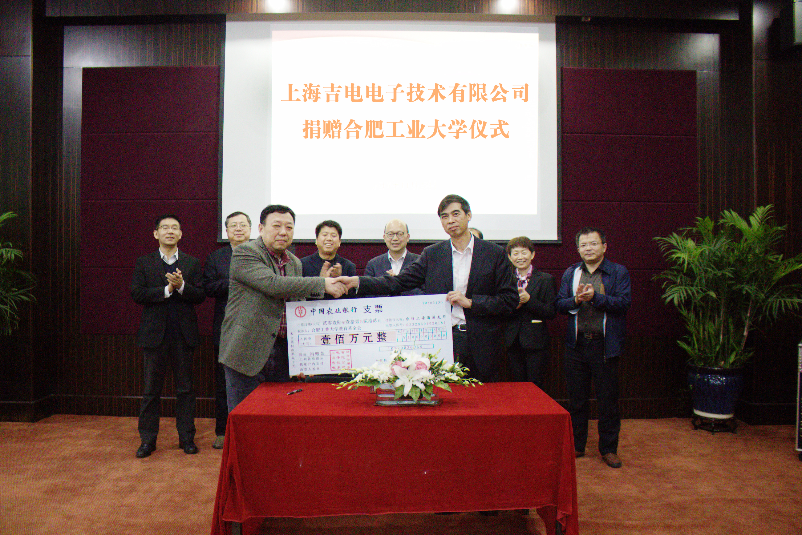 2016年11月22日下午,上(shàng)海麻豆网站電子技(jì)術有(yǒu)限公司—合肥工業大學獎助學金捐贈(zèng)儀式在麻豆网站(diàn)公司大會議室隆重舉(jǔ)行。麻豆网站電(diàn)子財務(wù)總監吳劍嘯、部長歐建民、項目負責人劉成國,合肥工業大學總會計師閆平、校友會(huì)辦公室主任黃長喜、電氣與自動化工程學院蘇教授、高級(jí)工程師(shī)沈時興出席(xí)了會議。為支持合肥工業大學教育事業(yè)的發展,獎勵表現優異的(de)學子(zǐ)們,上海麻豆网站電子技術有限公(gōng)司向學校捐贈人民幣100萬元(yuán)。