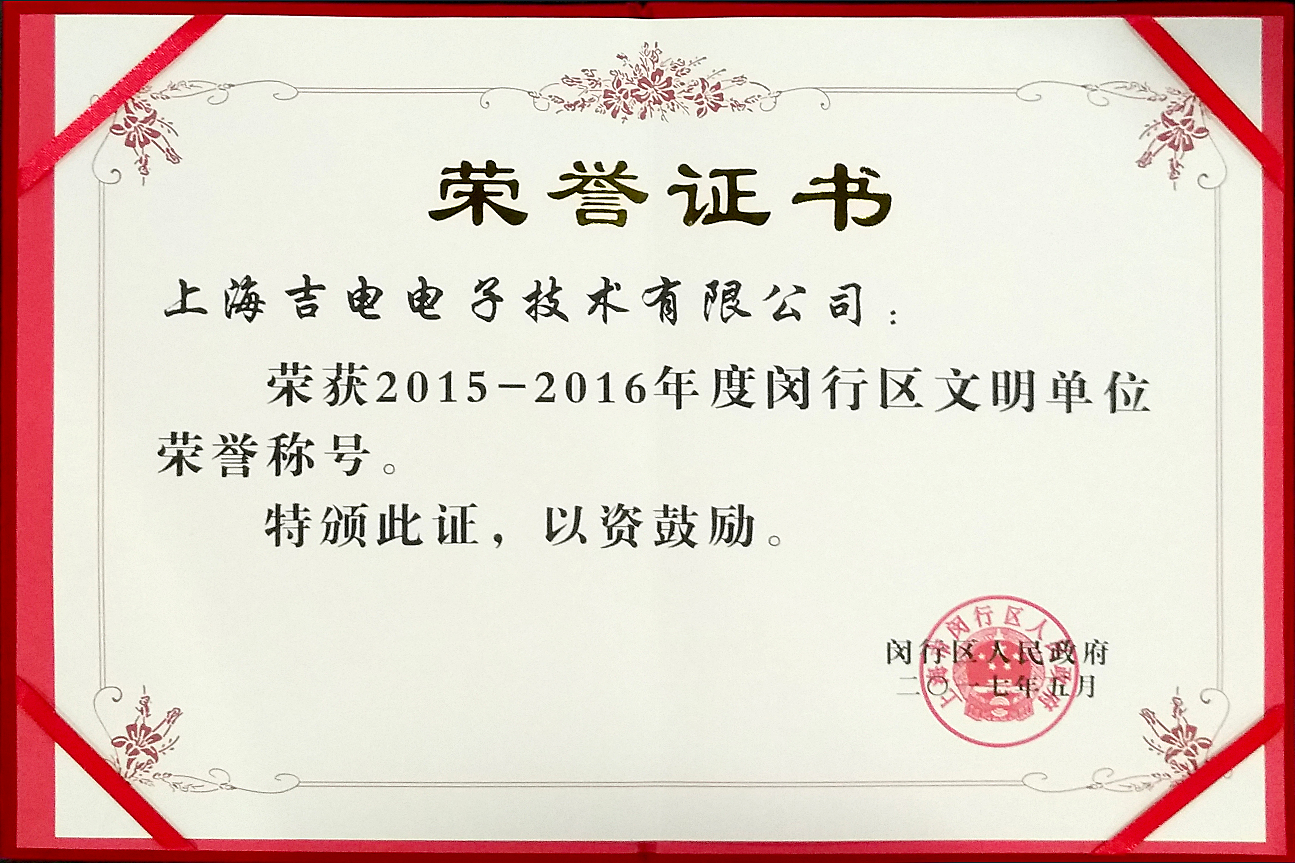 在閔行區鎮政府評(píng)比的精(jīng)神文明(míng)活(huó)動中,我司榮獲2015-2016年(nián)度閔行區文(wén)明單位榮譽(yù)稱號。